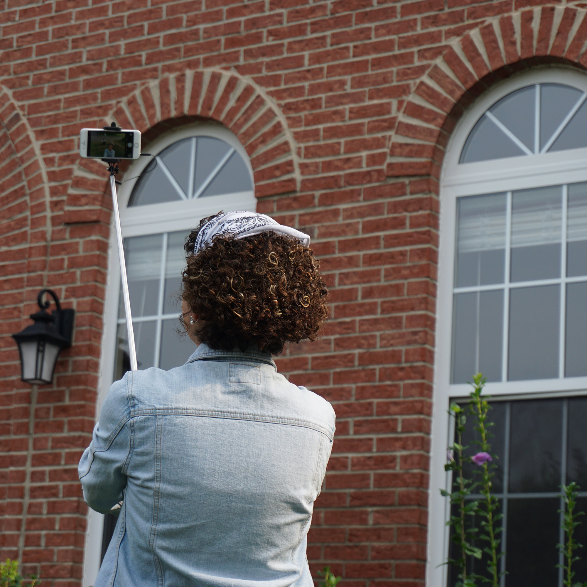 - Adjustable holder can orient to virtually any viewing angle providing both traditional selfie as well as above crowd shooting perspectives.